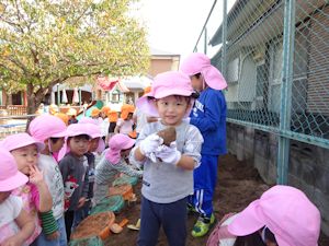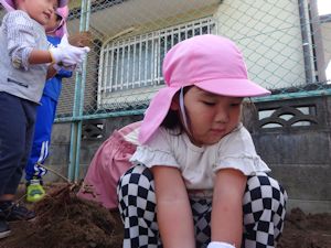 2024.10.25 きく組・ゆり組 保育園内畑 芋掘り